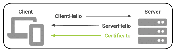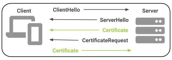 message to the client. The client will respond by sending a certificate to the server for authentication: