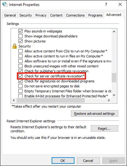 However, the current (Chromium-based) version of Edge, like Chrome, relies on CRLSets for revocation checking and appears from our tests below to be independent of revocation-checking settings in Internet Properties. (Note: In a previous version of these tests, done in September 2019, Internet Explorer and a pre-Chromium version of Edge did follow these settings in Internet Properties.)