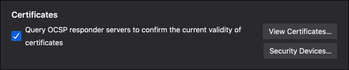However, because OCSP query failures are so common, Firefox (like other browsers) implements a “soft-fail” policy. If you wish, you can require strict OCSP checking by navigating to about:config