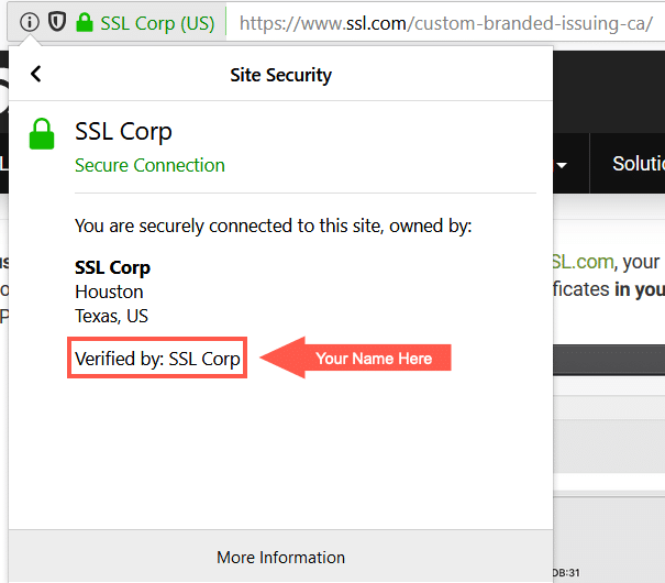 With aĀ custom-branded issuing certificate authorityĀ (CA) (also known as aĀ subordinate CA), signed and hosted by SSL.com, your company or organization can leverage our technology and expertise to issue publicly trusted X.509 certificatesĀ in your own nameĀ without having to invest in PKI infrastructure and staff.