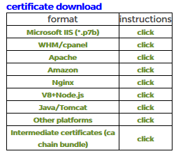 Then you can download the combined Intermediate Certificate bundle using the Intermediate certificates (ca chain bundle) link show on the right hand side of the page: