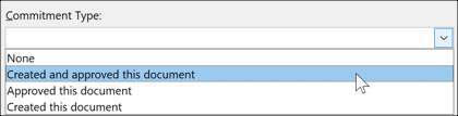 - The Commitment Type drop-down lets you specify if you created and/or approved the document.