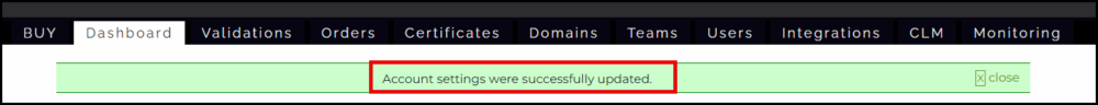 After submitting the change, a confirmation message will appear indicating that automatic renewal has been disabled. You can revisit the Automated Certificate Renewal section to confirm that the setting remains unchecked.