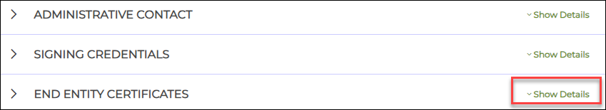 1. From your order page, scroll down to END ENTITY CERTIFICATES section and click Show Details.