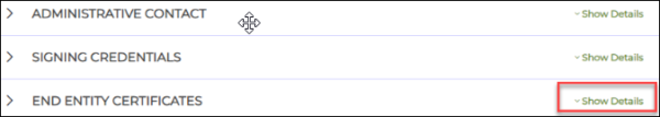 1. From your order page, scroll down to END ENTITY CERTIFICATES section and click Show Details.