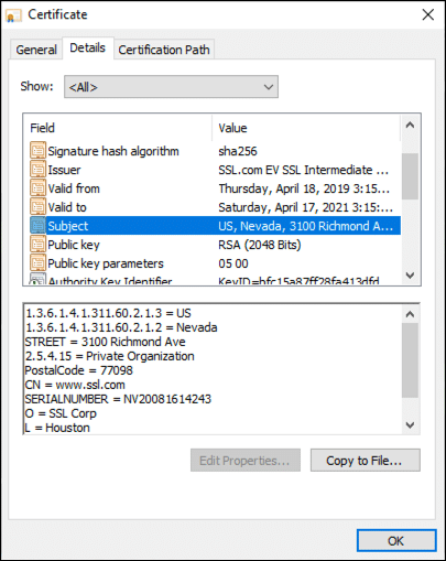 3. Now we can check the signer’s email address, the issuing CA, and the certificate’s validity period.