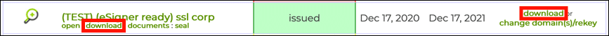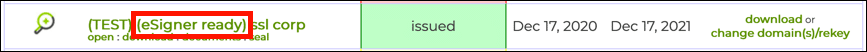 1. Navigate to an issued Code Signing order in your SSL.com account. Note that the order is labeled eSigner Ready.