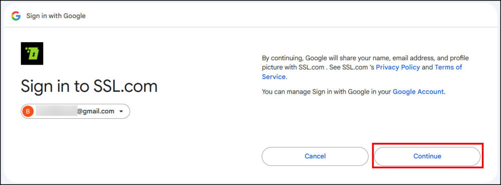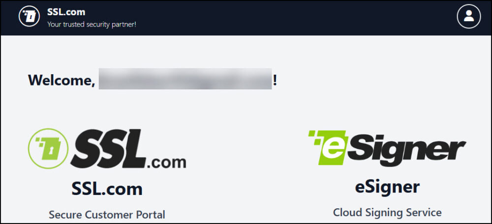- Your SSL.com account is now created through your Google account! From here, you can choose to login to the Secure Customer Portal or the eSigner Cloud Signing Service.