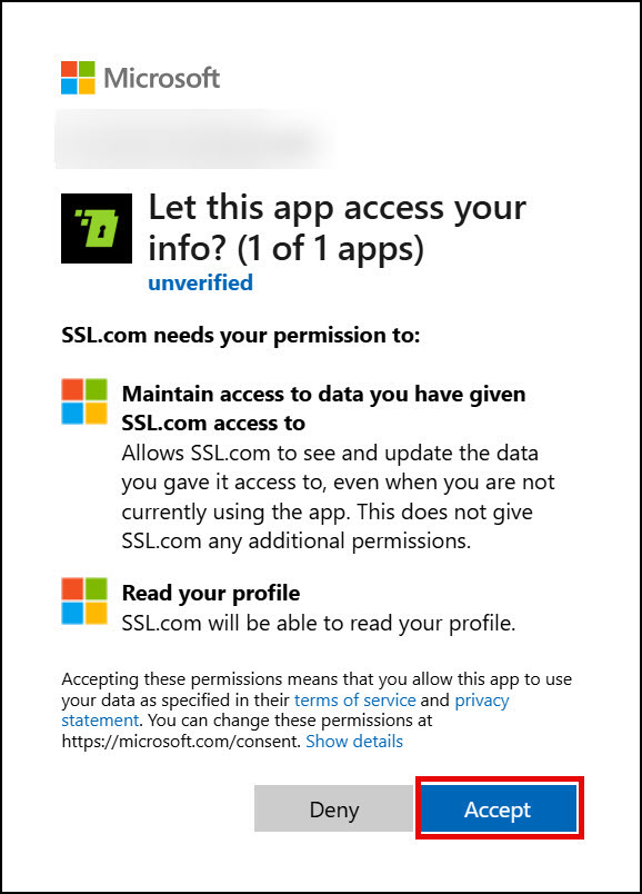 - Your SSL.com account is now created through your Microsoft account! Click the Secure Customer Portal option to view your account dashboard.