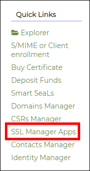 6. Click the SSL Managers link, located in the left sidebar under Quick Links.