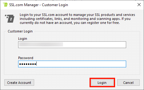 1. After installing and launching SSL Manager, choose Account >> Customer Login from the menu.