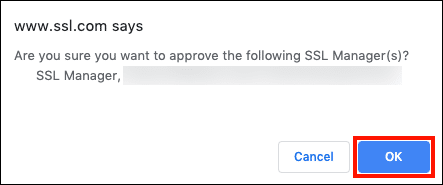 8. An alert will appear asking if you are sure you want to approve the SSL Manager. Click the OK button if you are sure.