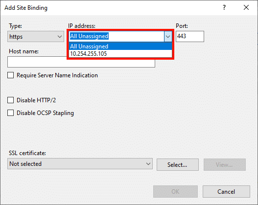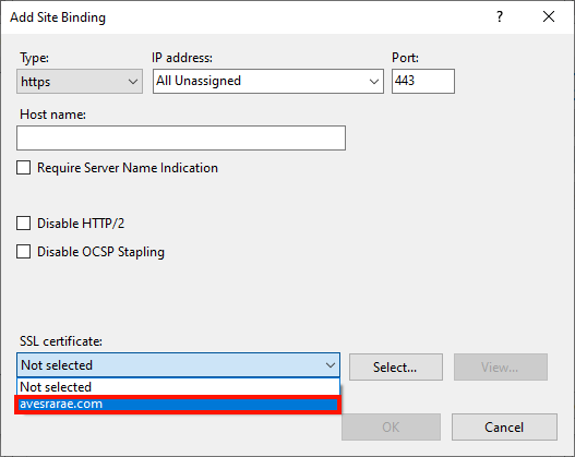 How to bind an SSL/TLS certificate to a particular website, port, and/or IP address in IIS 7, 8, or 10.