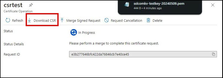 - Click Download CSR and save the file in a secure location.