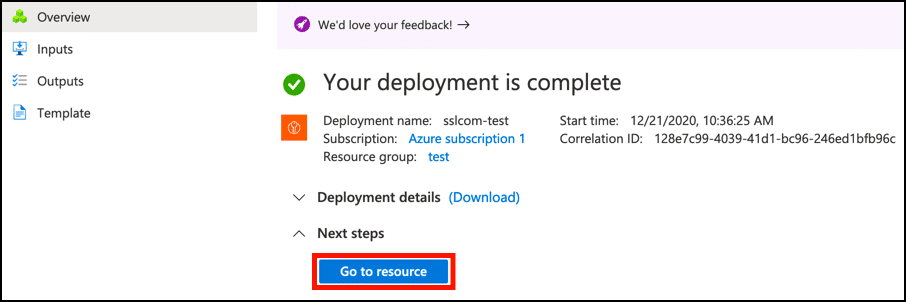 - Azure will then create your new Key Vault. Once it is ready, you can access it by clicking the Go to resource button.