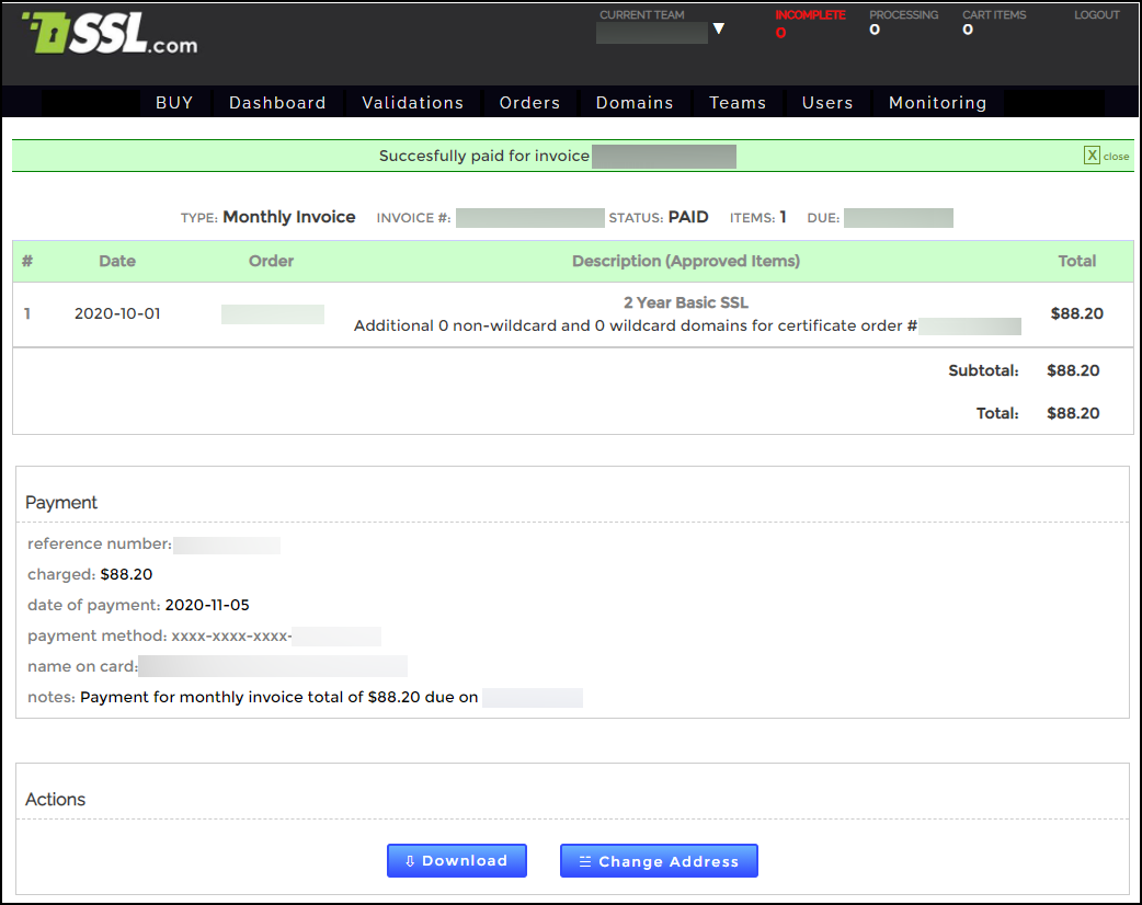 Our priority at SSL.com is to make your certificate buying and installation experience as smooth as possible. With this in mind, we’ve implemented an easy-to-use invoicing process. Here’s how it works: