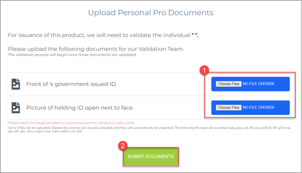 Identity verification can be done in two ways: manually uploading documents or through automated identity validation.