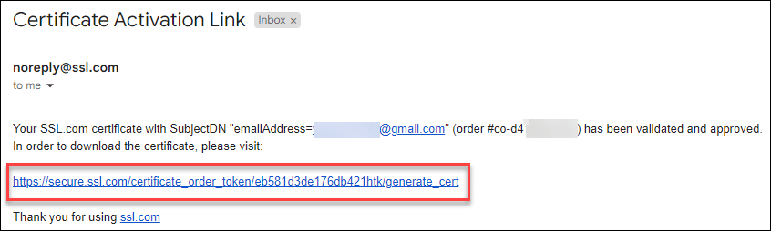 - When the documents you uploaded have been validated by our staff, the recipient address (specified in step 8 above) will receive an email with a link to collect the certificate. Click the link.