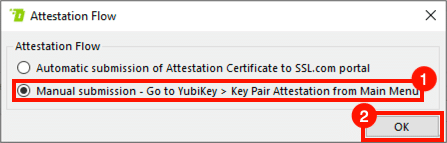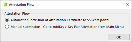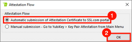 7. At this point, you can choose between automatic and manual submission of the YubiKey attestation certificate to SSL.com. Use the clickable tabs below for instructions on each method.