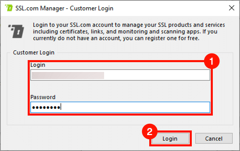 12. If prompted, enter your SSL.com Login and Password, then click the Login button.