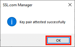 13. A dialog box should appear saying that the key pair has successfully been attested. Click the OK button to dismiss the dialog box.
