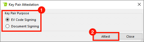 11. Select the purpose for the key pair you generated, then click the Attest button.