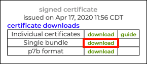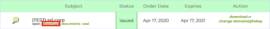 18. When your certificate order has been validated and issued, click its download link in the portal.