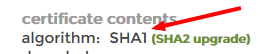 If your certificate uses SHA-1 you will also be shown a link to reprocess it to use SHA-2: