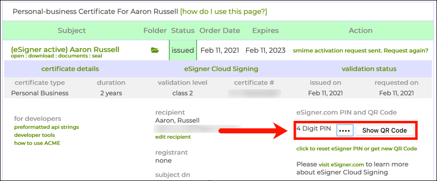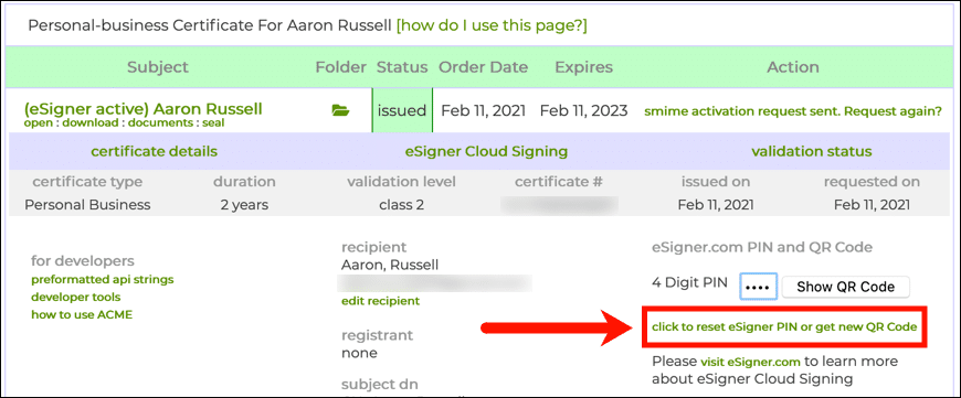 These instructions will show you how to view and reset your eSigner QR code or reset your PIN.